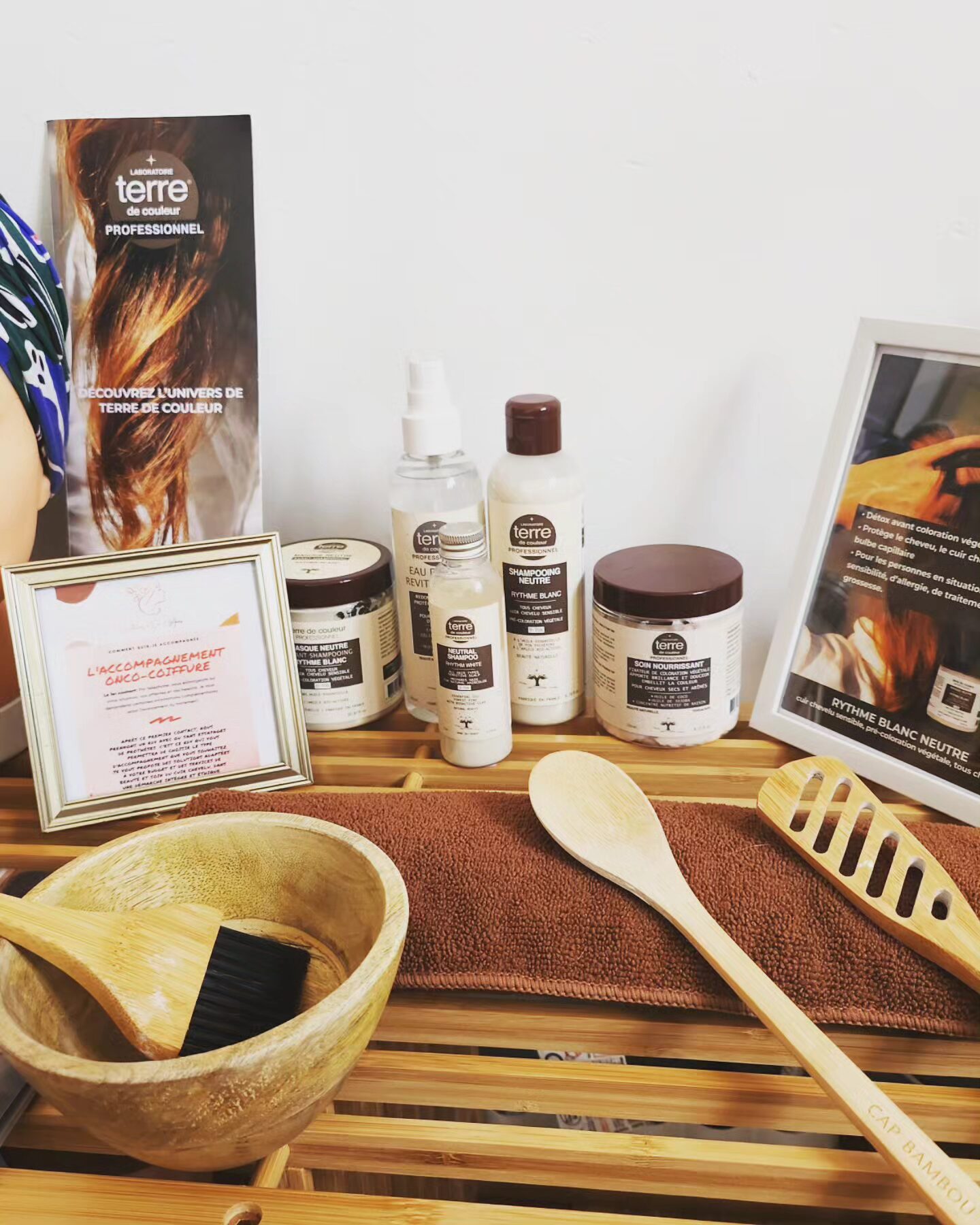 Benjamin se spécialise rapidement dans l’onco-coiffure, une mission de cœur pour aider ses clients à retrouver confiance en eux malgré la maladie. En collaboration avec Terre de Couleur, il utilise des produits naturels et doux pour accompagner ses clients, notamment à travers le soin Rythme Blanc, devenu incontournable dans son approche.